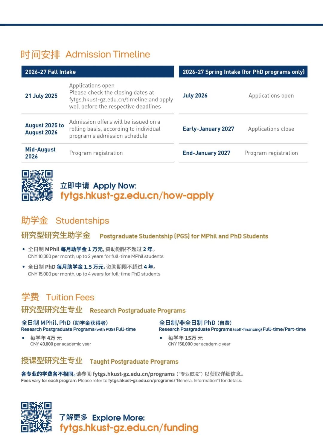 来港科大(广州)读硕博!2026-27申请通道现已开启
