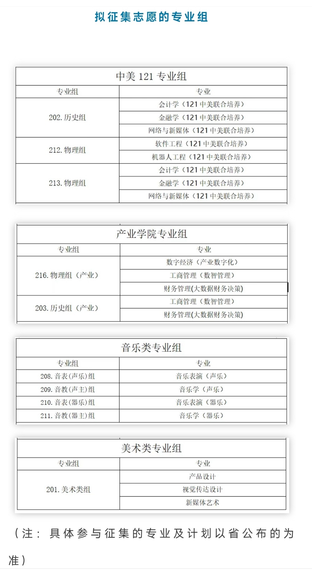 ●121中美合作项目中的专业仅限于在121中美合作项目中的专业间转互换,不允许转入其他普通类(含艺术类)专业。