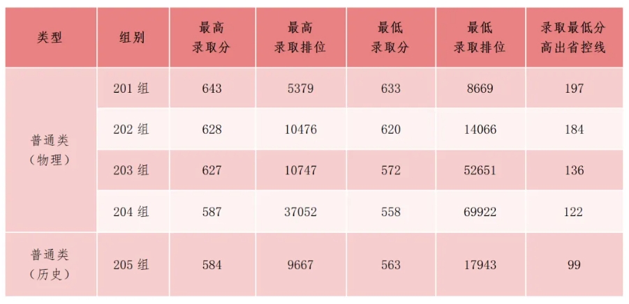 普通类各专业组录取情况