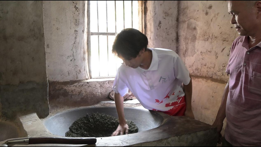 “古树守护村子,茶叶滋养村民,均为花园村之根。”花园村制茶师傅徐日庭的话语道出传承之重。实践队成员对传统民间制茶工艺展开调研,参与制茶技艺学习,体验摊青、杀青、揉捻和烘干等传统工序,并计划以短视频推广这项家族传承数代的技艺,让茶香漫出古村,飘向更远的地方。