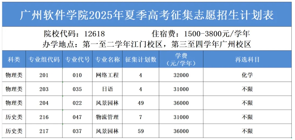 广东省物理: 201专业组网络工程专业,203专业组日语专业,204专业组风景园林专业;