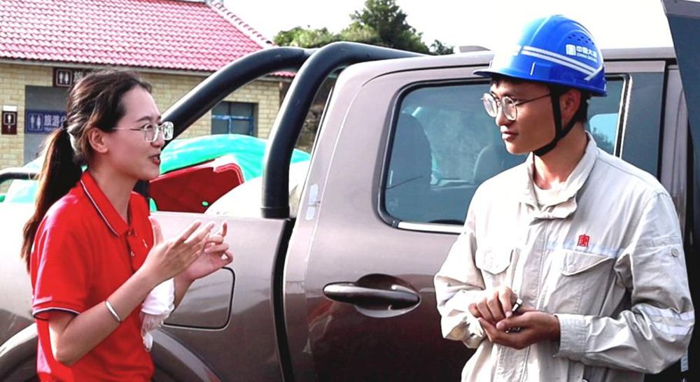 图 | 蔡俊亮为同行的队友介绍新能源产业发展