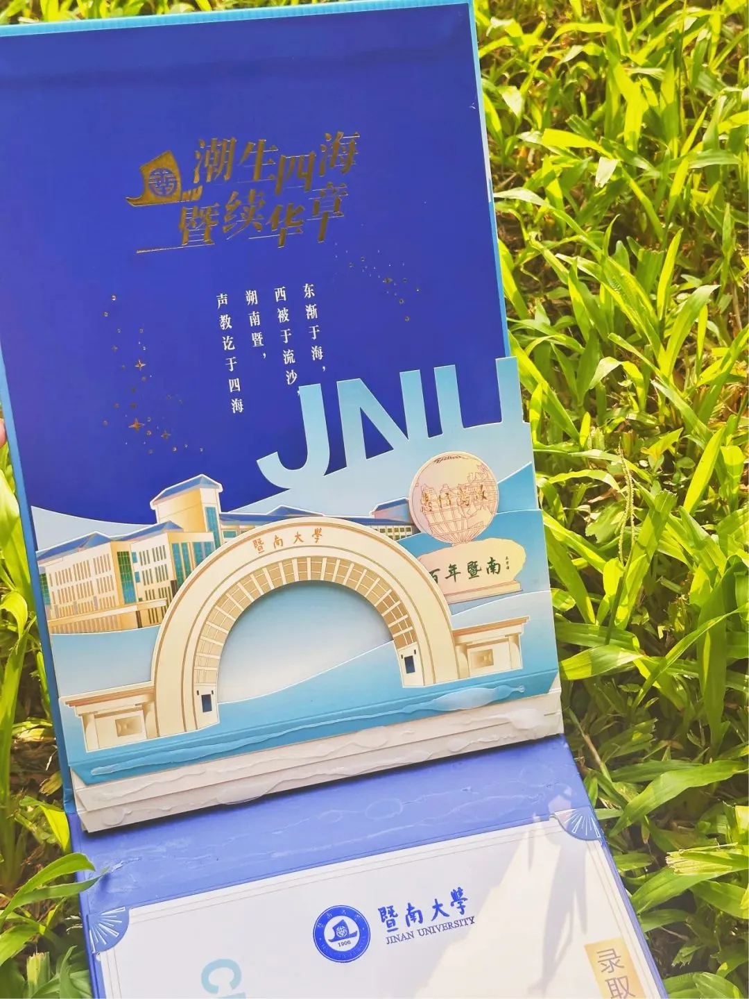 再耐心等待一段时间,伴随着夏日的微风,暨南大学录取通知书将为各位暨南萌新们送上第一份暨南礼包!