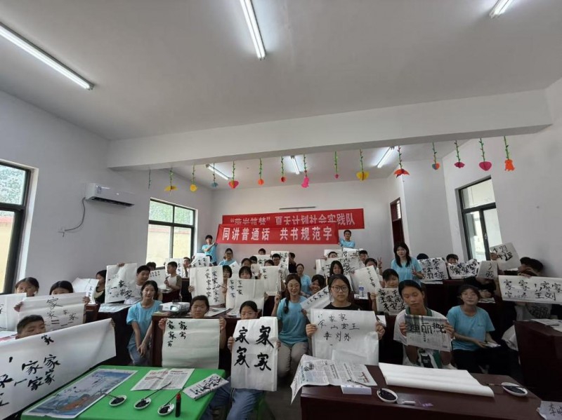 2025年7月2日-10日山东石油化工学院"文润乡村 语筑未来"推普实践团走进菏泽市东明县,以普通话推广为纽带,架起文化传承与时代沟通的桥梁。实践期间,团队通过方言普查、发音矫正、情景教学等形式,让普通话的种子在东明的田野与校园生根发芽。
