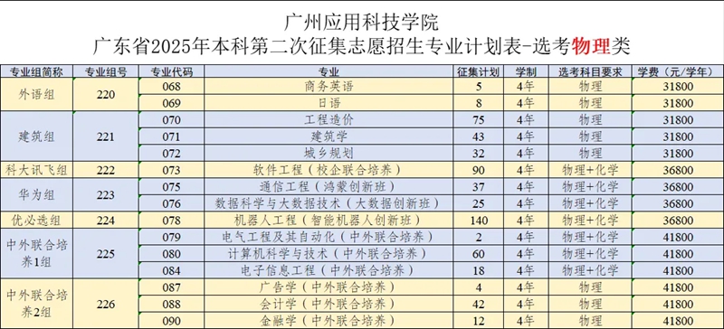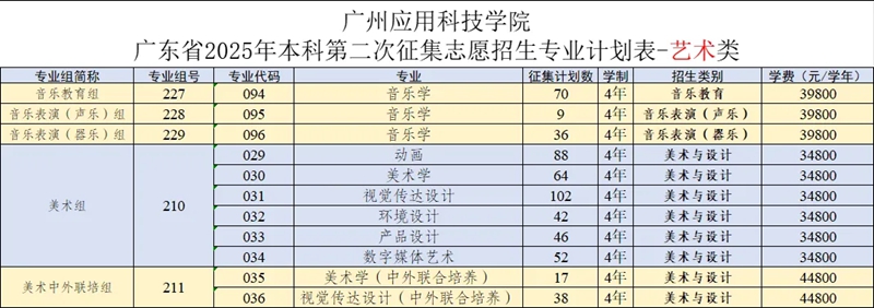 广州应用科技学院在历史、物理、音乐、美术与设计类有部分扩招补录名额。入学后可申请转入心仪专业,欢迎广大考生积极填报,把握上岸优质本科专业的宝贵机会!