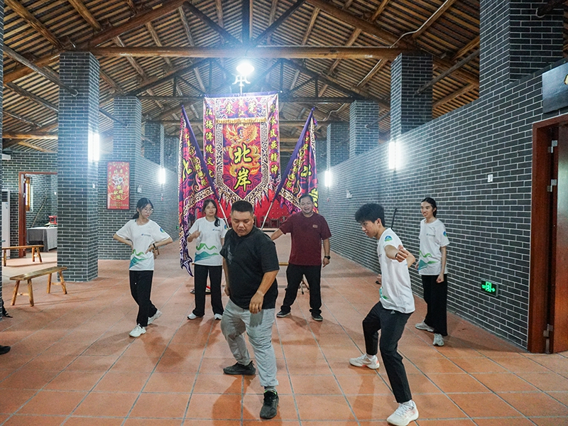 在访谈环节,传承人结合史料与家族传承故事,为队员们详细介绍麒麟舞的历史渊源。他介绍道,麒麟舞源于先民对祥瑞的崇拜,经过数百年传承,早已融入当地百姓生活,逐渐成为当地民俗文化的重要符号,成为节庆时凝聚人心的文化纽带。每一个动作都蕴含着驱邪纳吉的美好寓意,从服饰道具的讲究,到表演流程的深意,每一个细节都彰显着古人的智慧。