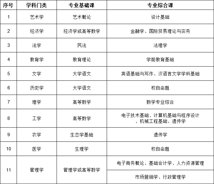 普通专升本:两门公共课(政治、英语),一门专业基础课,一门专业综合课