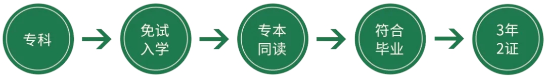 相沟通专升本:大专入学→同时参加学校相沟通专升本班→大一、大二利用部分周六日时间完成本科课程学习→考试合格→专科毕业同时获得自考本科毕业证书、学士学位证