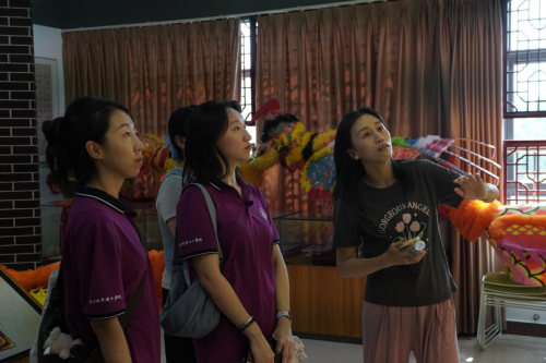 实践团首站抵达前山街道市民艺术中心,与街道办及文化站负责人进行交流。双方围绕非遗保护与发展这一主题,明确以“促进非遗活态传承”为核心目标。为打破非遗传播的年龄壁垒,实践团计划借助创意宣传片、特色IP形象以及推广小程序等年轻化、数字化手段,为非遗文化传播搭建新平台,为后续实践活动的开展奠定了坚实基础。