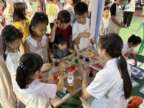 活动以“柑茶之旅集章卡”贯穿全程,参与者完成“一‘箭’回‘柑’”、“滴映茶色”、“茶径寻踪”、“扇取柑茶”等五大主题任务即可获得通关印章来到套圈区套取礼品。传统投壶融入柑茶元素,不同年龄段玩家挑战投箭闯关,现场叫好声此起彼伏;“滴映茶色”实验技巧融合科学知识与趣味互动,通过油、水、色素模拟“火山熔岩”的景观,生动讲解柑茶风味形成原理;“茶径寻踪”的环节要求参与者限时记忆制茶工艺流程并拼图还原,让大家沉浸式感受制茶匠心;“扇取柑茶”鼓励游客手绘柑茶主题扇面,留存独特纪念,在创作中加深对柑茶文化认知。