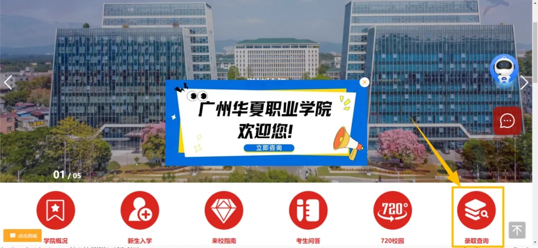 进入广州华夏职业学院招生信息网官网:http://zsw.gzhxtc.edu.cn/,点击【录取查询】栏目—输入准考证号即可查询。
