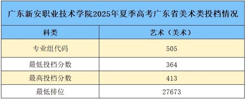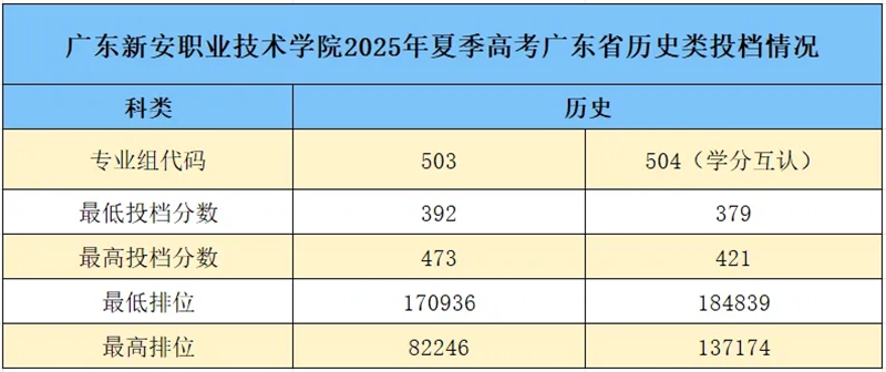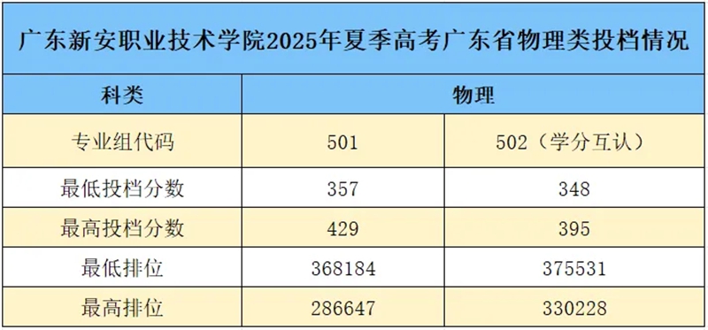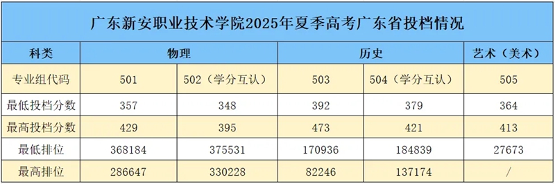 广东新安职业技术学院2025年广东省夏季高考投档情况公布
