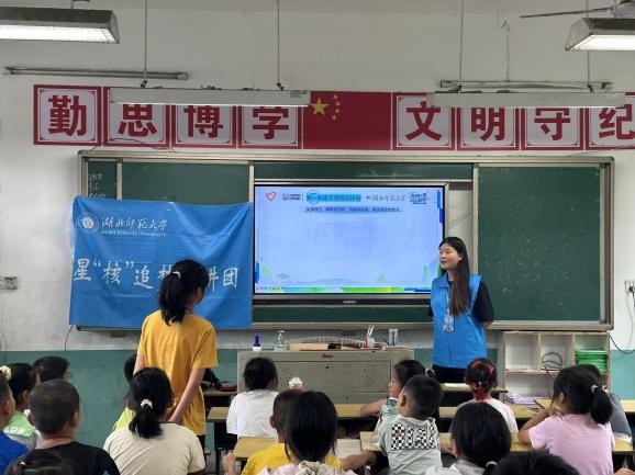 7月8日起,湖北师范大学星“核”追梦宣讲团深入黄石城区、浠水、阳新等地的10个社区和8所中小学,开展了36场形式多样、内容丰富的宣讲活动,累计覆盖听众1800余人次。他们以“两弹一星”精神为主线,通过生动的故事、科学的讲解和互动体验,向中小学生普及核能知识,弘扬科学家精神,激发青少年科技报国的热情。