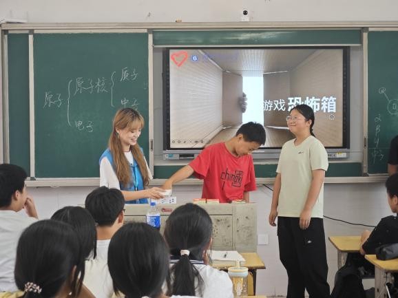 宣讲员王宇欣指导学生进行“恐怖箱”小游戏