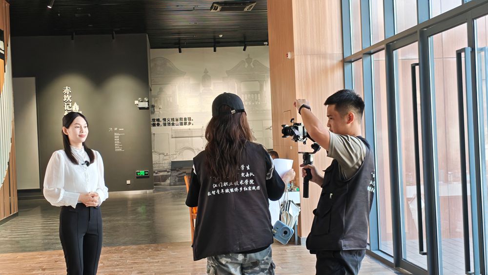 图:江门职业技术学院数智青年赋能侨乡红实践团进行宣讲视频拍摄