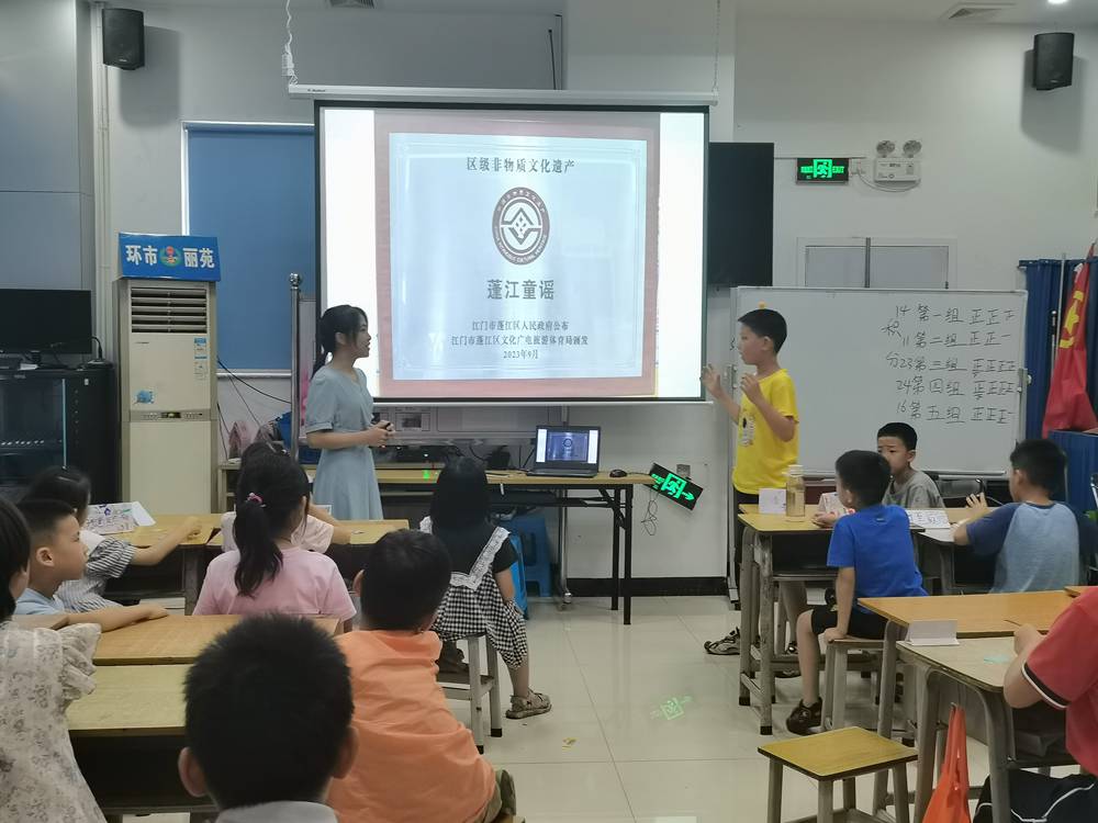 图:江门职业技术学院“非遗文化唱响侨乡”实践团开展蓬江童谣教习