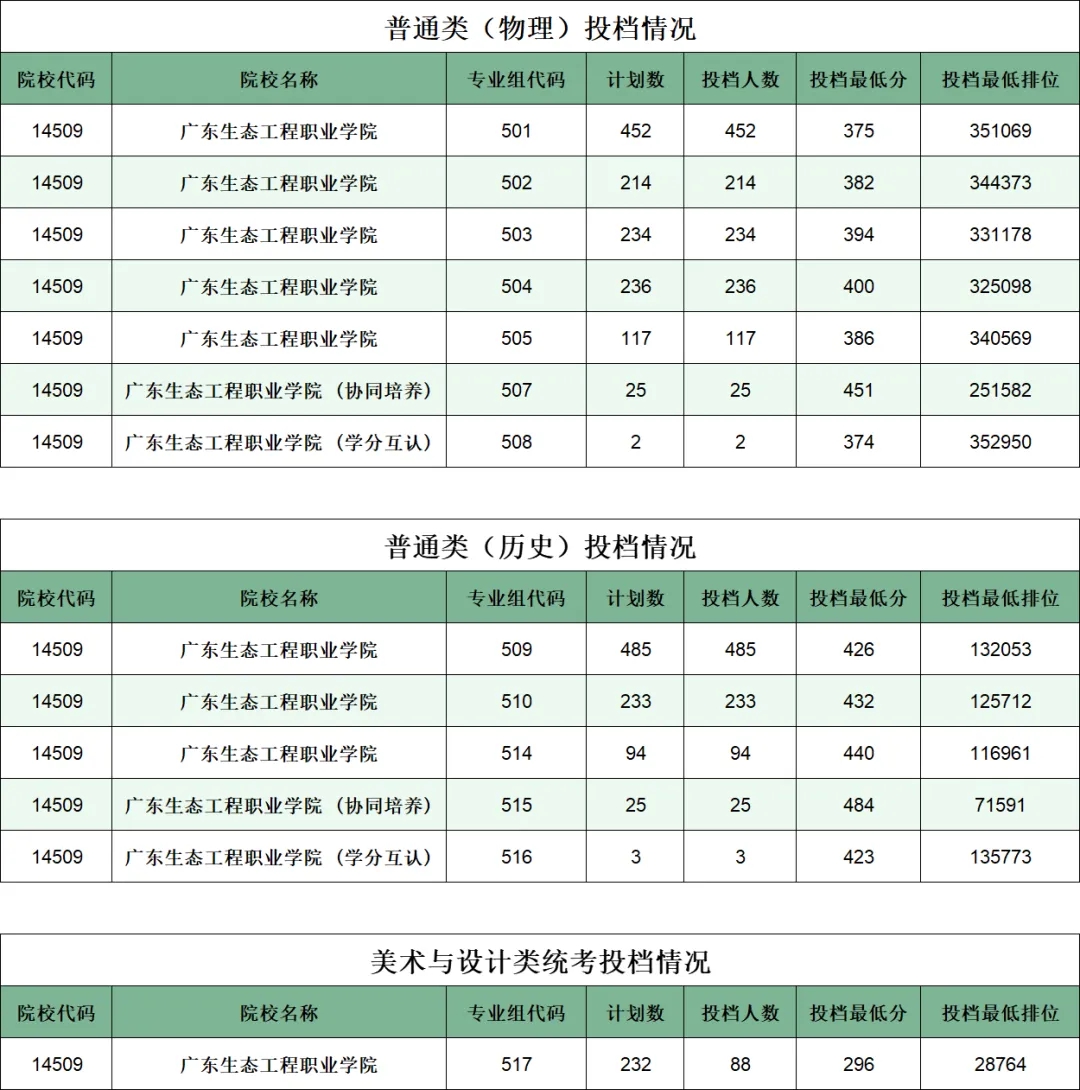 广东生态工程职业学院2025年夏季高考投档情况