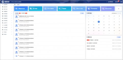 ·毕业管理:自动生成电子档案,对学生成绩、个人培养计划书、开题报告、学位论文中期报告、实践活动报告书等文件进行归档;在线办理离校手续。