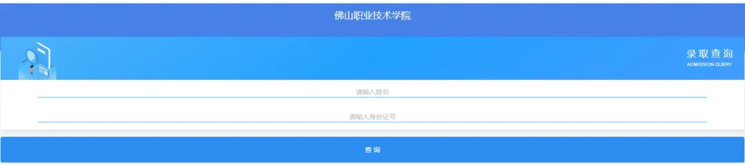 扫描下方二维码,关注“佛职院招生与就业指导中心”公众号,点击“招生服务—录取查询”,输入考生姓名和身份证号即可查询。