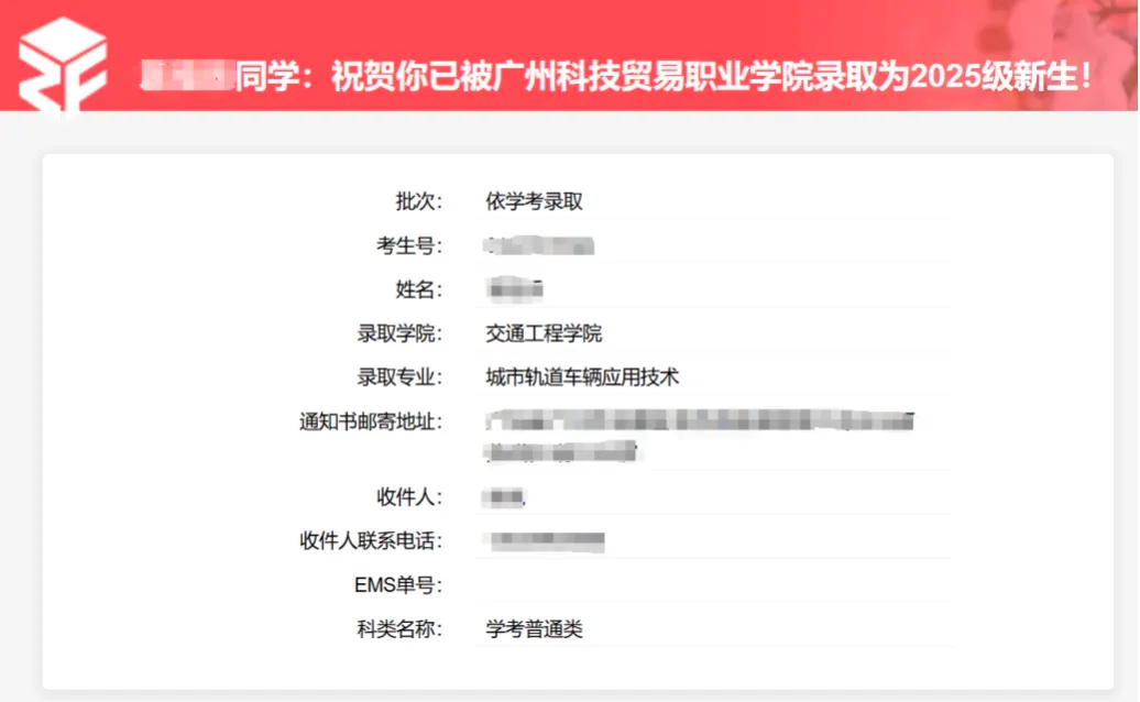 新生录取通知书将于八月中旬后分批寄出,请保持电话通畅。请广大考生和家长关注微信公众号“广州科技贸易职业学院招生办”或招生信息网(http://www.gzkmu.edu.cn/zsw),了解更多招生资讯。
