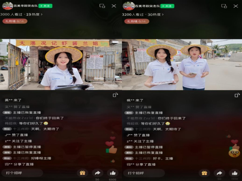 聚焦市级非遗“大澳虾酱制作技艺”,突击队开展了“渔乡新韵·虾酱新声”实践活动。在“况记海味店”,队员们对话传承人蔡实晃夫妇,记录古法工序。为破传承困境,队员们以“青春直播”带领网友云体验虾酱咸鲜的魅力,直播反响热烈。数字化传播为古老技艺插上“云翅膀”,拓宽受众,探索出非遗“活态传承”的青春路径。