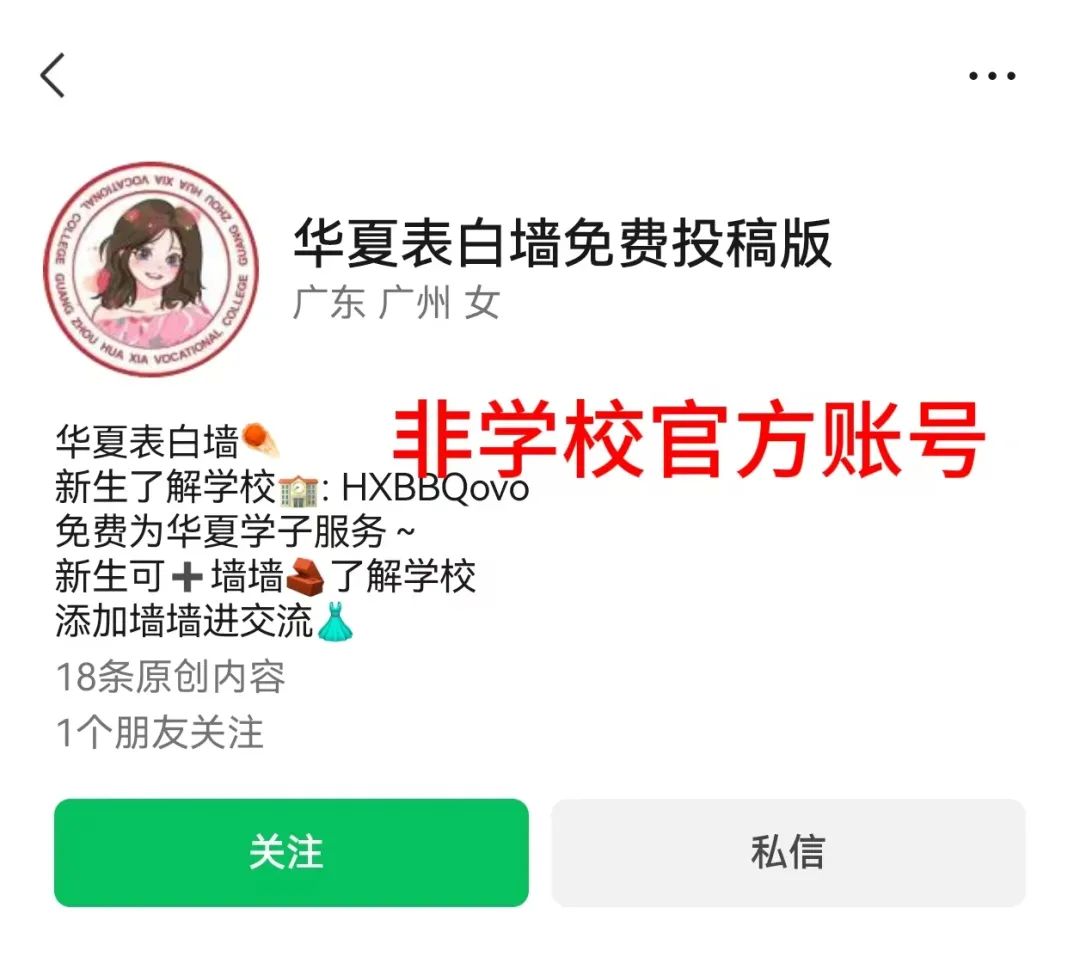 一、广州华夏职业学院从未授权任何非官方机构或个人建立、运营相关自媒体账号。上述及类似账号均与广州华夏职业学院无关,请全体师生、家长及社会公众提高警惕,谨防受骗。