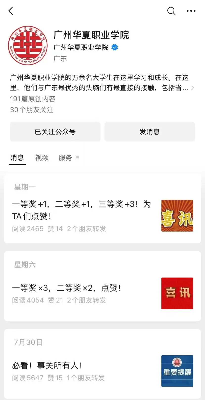 学校官方微信公众号