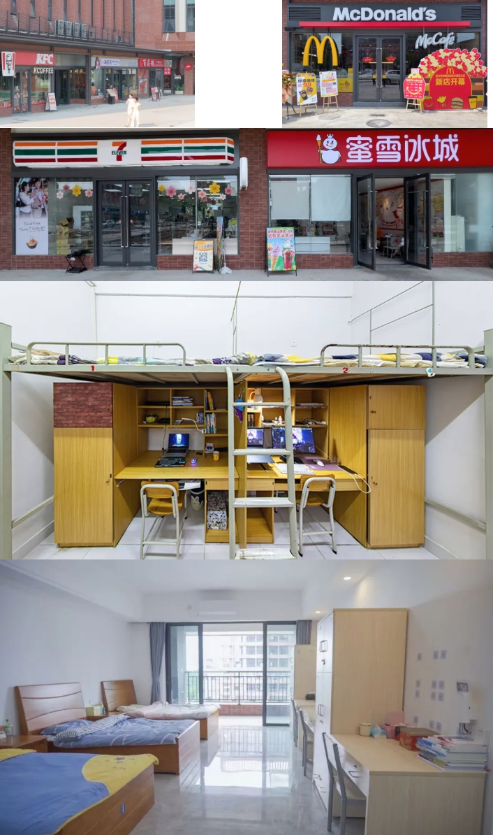 校园设施先进且完善,饭堂整洁温馨,饭菜多样可口;图书馆静谧宽敞,书香四溢;饮品店别具风情,是课余休闲好去处;宿舍环境舒适,是温暖的第二家园。