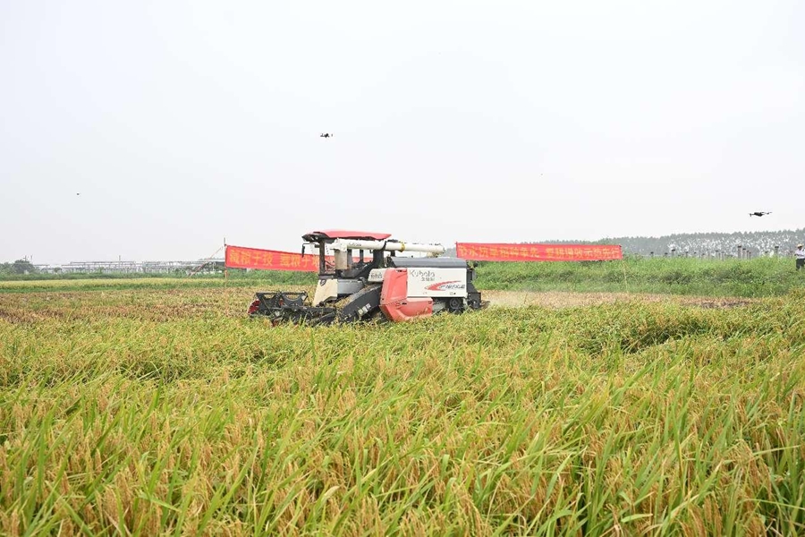 金灿灿的稻田里,收割机轰鸣作响,进行头季收割作业。就在4个月前,这里还是石块遍地、杂草比人高的荒地,如今却已是一片丰收景象。据介绍,节水抗旱稻适用于多种种植场景,集高产、优质、节水、抗旱等优势于一体,是近年来农业科技领域标志性成果之一。今年4月,研究院采用直播旱管方式,在这里种植了节水抗旱稻“旱优78”。经现场测产,边际土地复耕再生稻头季亩产达640.9公斤。