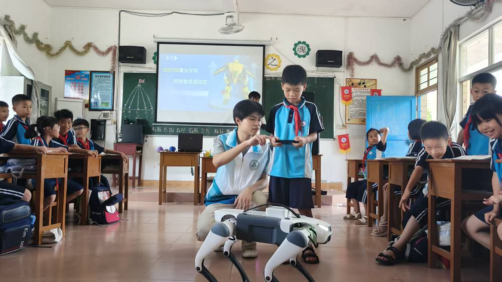 在科技教育的田野上,机电工程学院“智创未来”科普实践团与信息工程学院“数字匠心 光影筑梦”实践团,分别从不同维度播撒科技火种,尝试为产业发展插上数字化翅膀。“智创未来”团队不仅在那碌小学和覃巴中学带领孩子们体验趣味编程,近距离感受智能科技的魅力,更与当地教师围绕“STEM与人工智能教育”展开专题研讨,分享利用简易工具培养科技创新人才的宝贵经验,破解乡村学校科技教育资源匮乏困局,力求从根本上提升其科技教育水平。同时,他们与竹山村的干部群众座谈,现场演示人工智能软件在乡村产业推广、人居环境治理、办公效率提升等场景的应用实效,将数字技术赋能基层治理的理念具象化。
