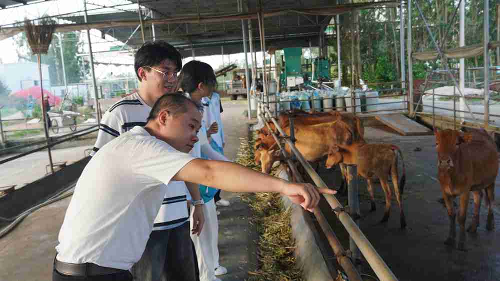 信息工程学院“数字匠心 光影筑梦”团队以“数字+光影”为纽带,既播撒科学种子,又为覃巴产业精准“画像”。在覃巴第二小学,队员们开展别开生面的虚拟仿真科普活动:孩子们戴上设备“穿越”至虚拟农场、数字工厂,在互动体验中感受科技魅力;团队定制的科普拼图,让动手乐趣与科学启蒙同步展开。尤为值得一提的是,该团队并未止步于校园,还深入养牛场、同心广场、水稻田等,用镜头捕捉特色养殖产业活力、乡村烟火气与稻田生机,精心制作产业宣传片,这不仅是为当地特色产业打造“走出去”的数字名片,更是以数字技术精准“画像”,助力覃巴产业焕发新活力的有益尝试。