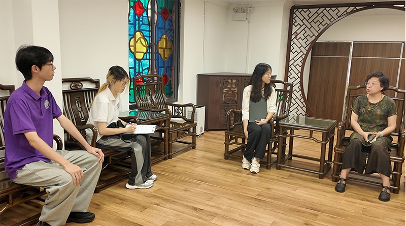随后,实践队拜访了广州博物馆宣教部主任刘颖颖,并围绕“AI背景下红色文化资源的创造性转化和创新性传播”主题展开深度访谈。刘颖颖介绍,为响应广州市委宣传部“英雄花开英雄城”号召,广州博物馆近年开展了“镇海楼杯”辩论赛、模拟经营类研学、红色剧本杀、红领巾讲解等活动。在此基础上,刘颖颖指出,只有从青少年视角出发,以沉浸式、互动式、情景式的多元化叙事取代单一化的灌输式教育,充分激发参与者的主体能动性,方能让革命历史从场馆走向大众,让红色教育真正入脑入心。