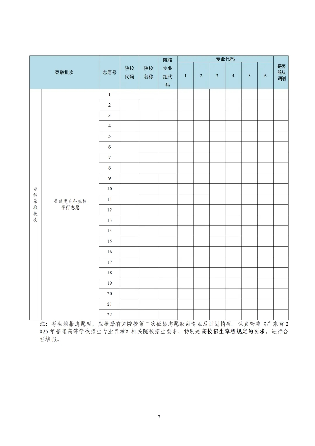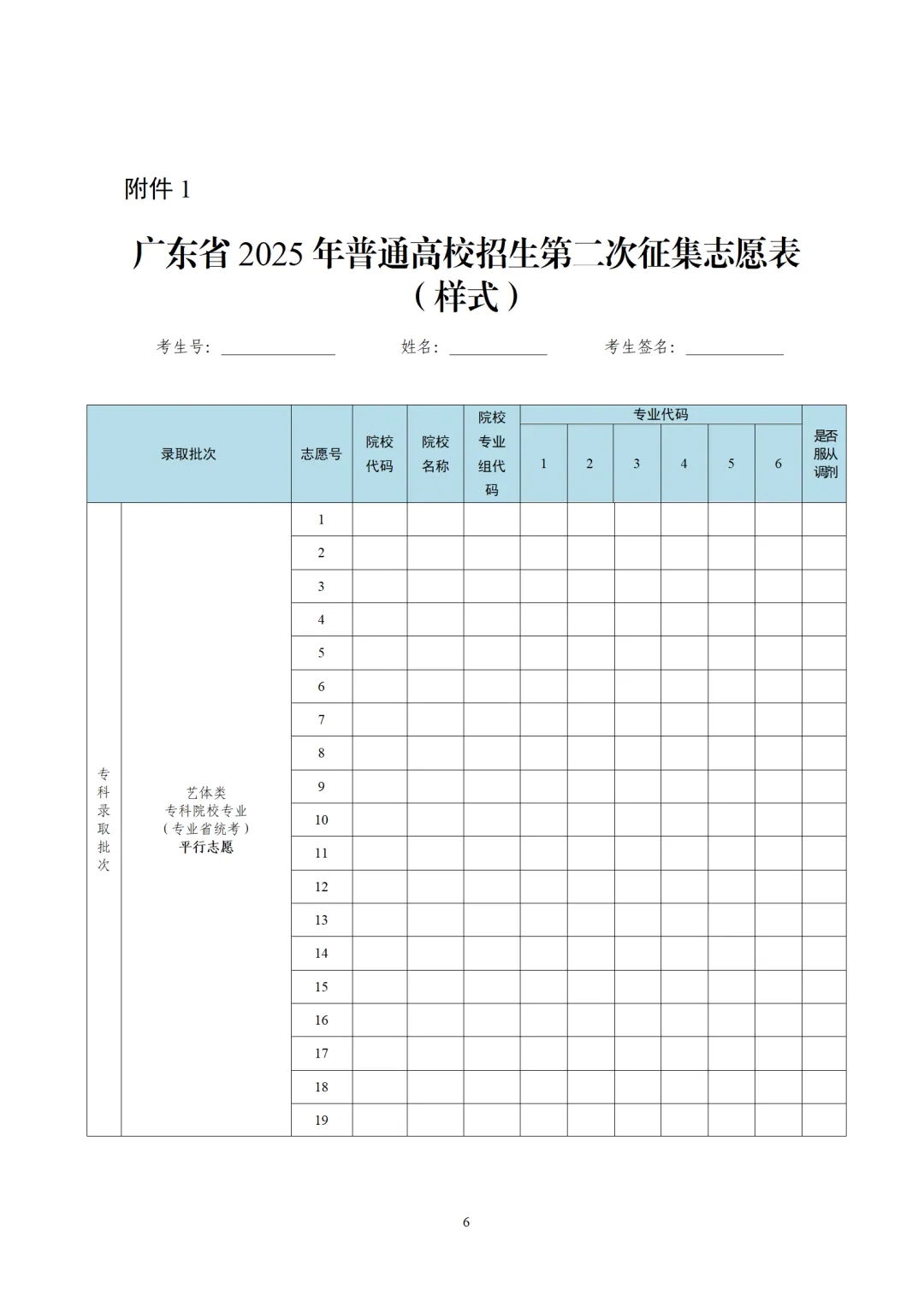 1.广东省2025年普通高校招生第二次征集志愿表(样式)