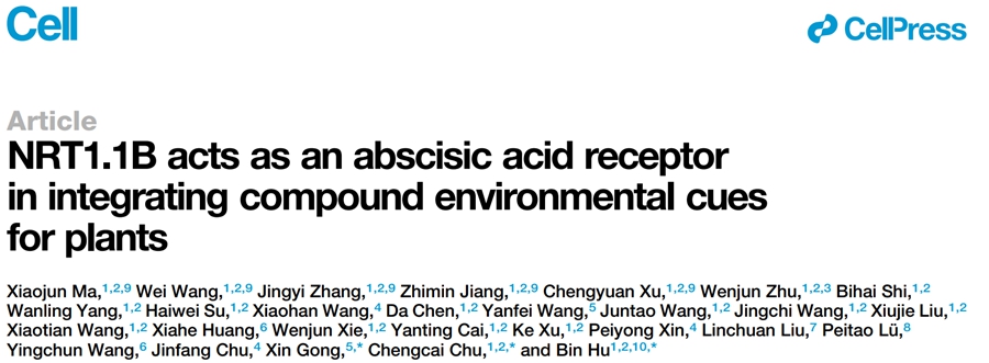 北京时间8月11日,华南农业大学农学院、广东省高等学校未来作物精准育种基础研究卓越中心、岭南现代农业科学与技术广东省实验室储成才教授/胡斌教授团队在国际顶级期刊《细胞》(Cell)在线发表了题为《NRT1.1B作为植物ABA受体整合复杂环境信号》(NRT1.1B acts as an abscisic acid receptor in integrating compound environmental cues for plants)的研究论文。研究发现,植物中的NRT1.1B蛋白就像一个“智能开关”,能同时感知土壤中的氮营养状态和逆境信号,并根据环境变化指挥植物做出最优选择,实现对复杂环境的适应。