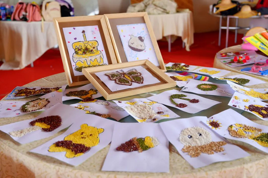 漆扇作品、扎染作品、立体绘本等创意成果展示
