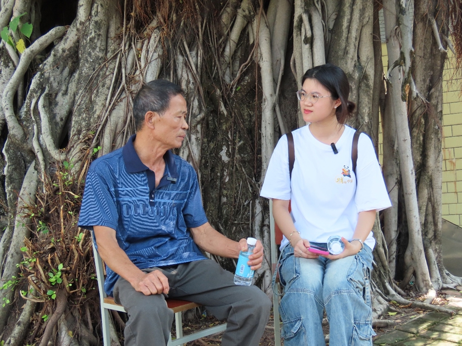 精准推普,旨在延续文化根脉。通过走访各村支书,整理古遗村宗祠典故、分界村古榕传说,编纂成《普通话故事集》,让沉睡的乡土记忆重焕生机。怀着崇敬,队员们认真倾听老兵讲述烽火岁月,将对印、对越自卫反击战的英雄事迹纳入册中,让红色精神跨越代际。此外,团队还沉浸式体验肇庆醒狮文化,用镜头捕捉狮头舞动的赤子之心、鼓点律动的豪情壮志,用普通话解说狮头扎制技艺与鼓点韵律,让这项传统艺术突破地域界限,走向更广阔的舞台。