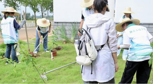 队员们化身"校园美容师",清理树坛杂草、归整落叶落果。汗水浸透了马甲,笑容却愈发灿烂。从环境美化到生态教育,"香"伴同行以绿为媒,将"百千万工程"的公共服务理念扎根乡土。
