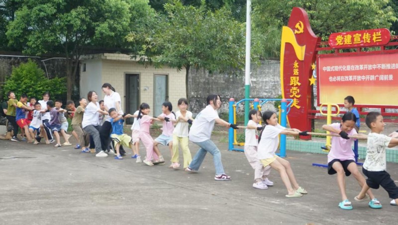 实践队还为小朋友们设计了《驿路传薪实践手册》,图文并茂地写下他们探索、学习与欢笑的点滴足迹,记录着小朋友们的成长过程。文化室内拔河比赛的呐喊声、“搭桥过河”的欢笑声此起彼伏,不仅增进了队员与小朋友们的协作,也编织了快乐与成长的珍贵回忆。结营仪式上,孩子们用积分兑换的不只是奖品,更是成长的见证。这一刻,实践活动画上圆满的句号,所有付出都化作最美的青春印记。