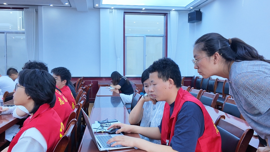 培训中,身着红马甲的实践团成员化身“小教员”,穿梭席间一对一辅导,不仅破解“合并单元格报错”等传统难题,还帮大家掌握“AI图表配色推荐”“AI函数纠错提示”等新技能,让“生硬的软件+智能的AI”真正变成基层干部“顺手的工具”。
