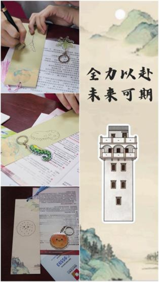 通过讲述侨胞捐建华侨中学、五邑大学的故事,生动诠释“捐资兴教、反哺桑梓”的华侨精神,激发起学子们的强烈共鸣,凝聚起团结奋进的精神力量。创新设计侨乡书签创作环节,组织学生手绘恩平烧饼、簕菜和开平碉楼、新会陈皮等文化符号并题写励志寄语,使一枚枚书签成为“政策+文化”的融合载体。活动深度激活文化自信,实现政策入心与文化育人的双向赋能。