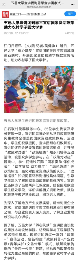以侨为桥,五邑大学“侨心筑梦”宣讲团把政策温度和文化自信种进侨乡学子心田