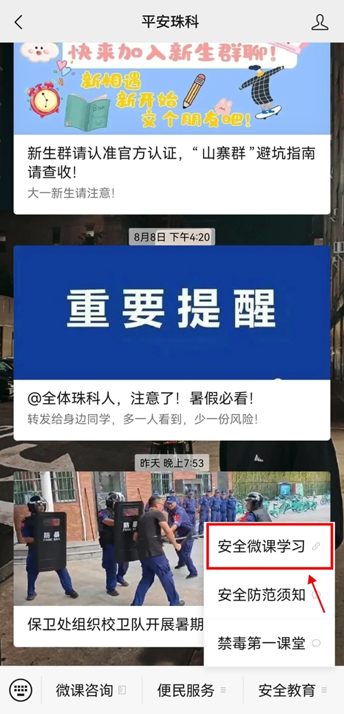 点击公众号菜单栏【安全教育】