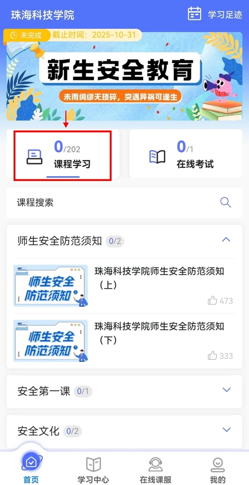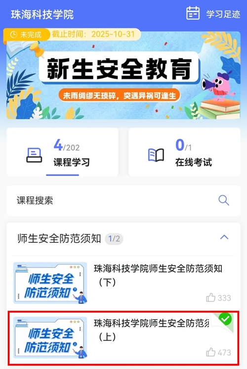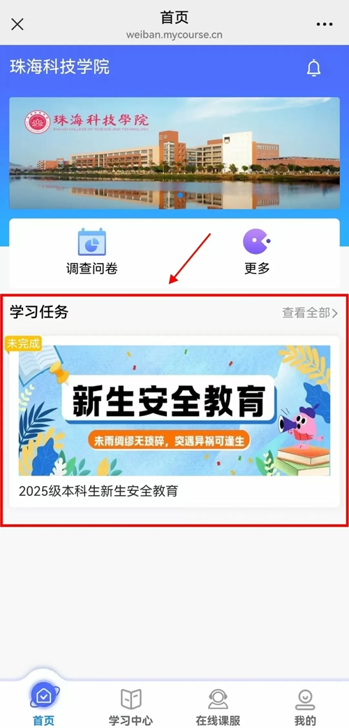 点击【2025级新生安全教育】