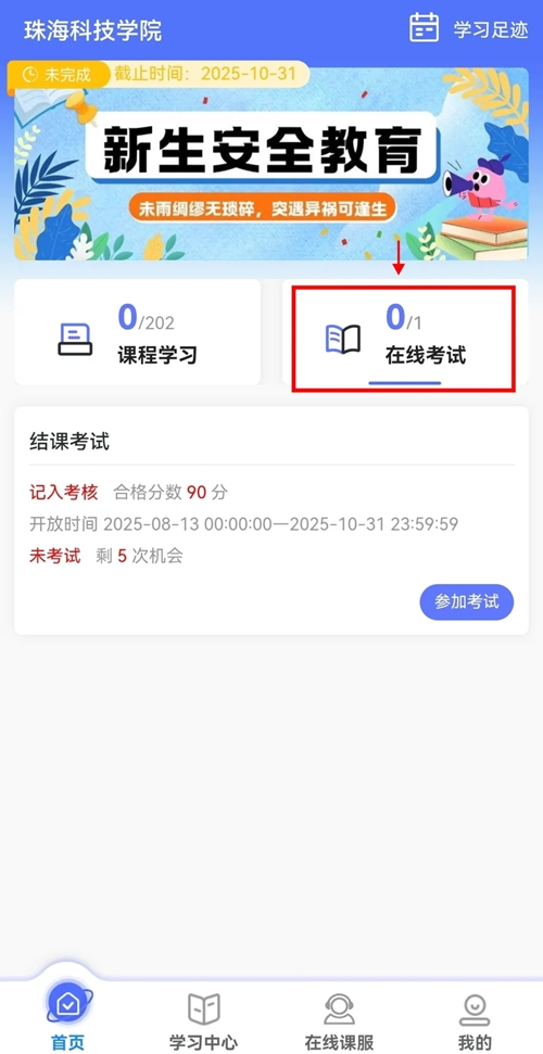 点击【在线考试】,完成考试