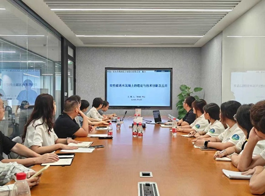 实地参观结束后,实践团走进深水规院,与院方开展技术交流。会上,江门职业技术学院的何松松老师率先以“高性能透水混凝土技术的理论与技术创新及应用”为题,阐述了最新研究成果。学生代表郑佳旋汇报了实践团研发的高性能低碳生态混凝土与实践成效。深水规院党晨席院长分享了在开拓双碳咨询业务,深入探索固碳减排、碳汇与水土保持的关联以及生态价值转化路径。双方围绕高性能低碳生态混凝土在生态修复领域应用展开讨论,深水规院党院长对实践团的低碳生态技术表示赞赏,认为其在生态治理实际场景中具有较好的应用潜力。双方在党建共建引领、产学研深度融合、生态建设项目联合攻关等方面达成高度共识,明确了未来的合作方向,旨在实现资源共享、优势互补。