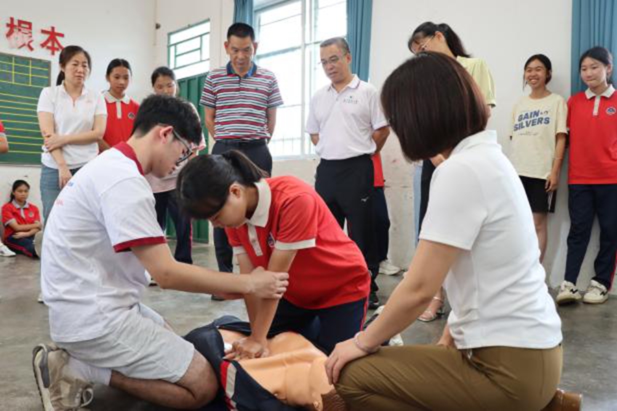 7月11日至12日,突击队队员走进云浮市云安区都杨镇都骑中学,开展应急救护宣讲活动。此次宣讲内容丰富且贴合中学生实际需求,不仅涵盖心肺复苏、止血包扎、海姆立克急救法等核心急救技能,还针对性地加入了防溺水、防中暑、脊柱侧弯预防及中医养生等知识,助力学生度过安全健康的暑期。
