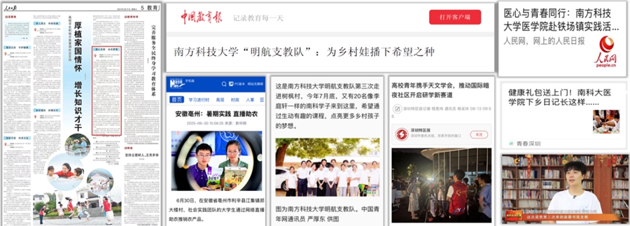 南科大社会实践活动曾受到《人民日报》、《中国教育报》、新华网、人民网、中国大学生在线、《南方都市报》、青春深圳、《深圳特区报》等多家媒体报道,取得了良好的育人效果与积极的社会反响。