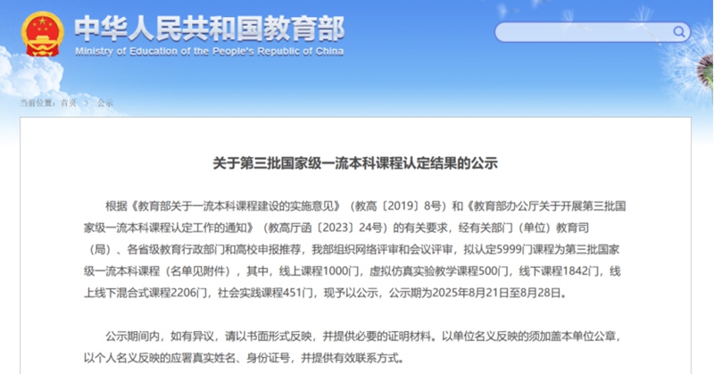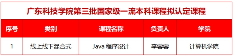 在教育部8月21日发布的《关于第三批国家级一流本科课程认定结果的公示》中,广东科技学院计算机学院李蓉蓉副教授主讲的《Java程序设计》课程拟被认定为国家级线上线下混合式一流本科课程,标志着学校课程建设正式迈入国家级序列。
