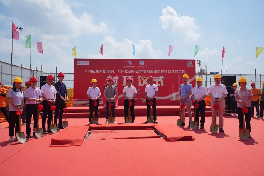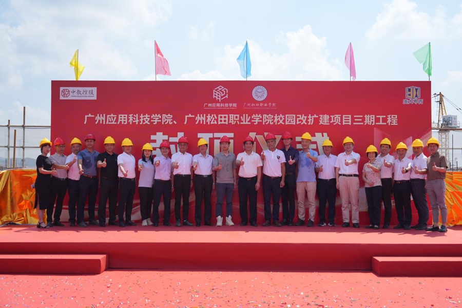 封顶凌云铸伟业,绘就蓝图谱新篇!8月27日上午,广州松田职业学院校园改扩建项目三期工程封顶仪式隆重举行。项目总投资6亿元、总建筑面积13万平方米,涵盖教学楼、实训楼、学生创新创业活动中心、学术交流中心和行政中心等五大核心建筑。自今年3月开工以来,稳步推进、高效建设,项目迎来主体结构全面封顶,标志着广州松田职业学院办学基础能力和综合实力实现了又一次跨越式提升,为学校迈向更高水平发展奠定坚实基础。