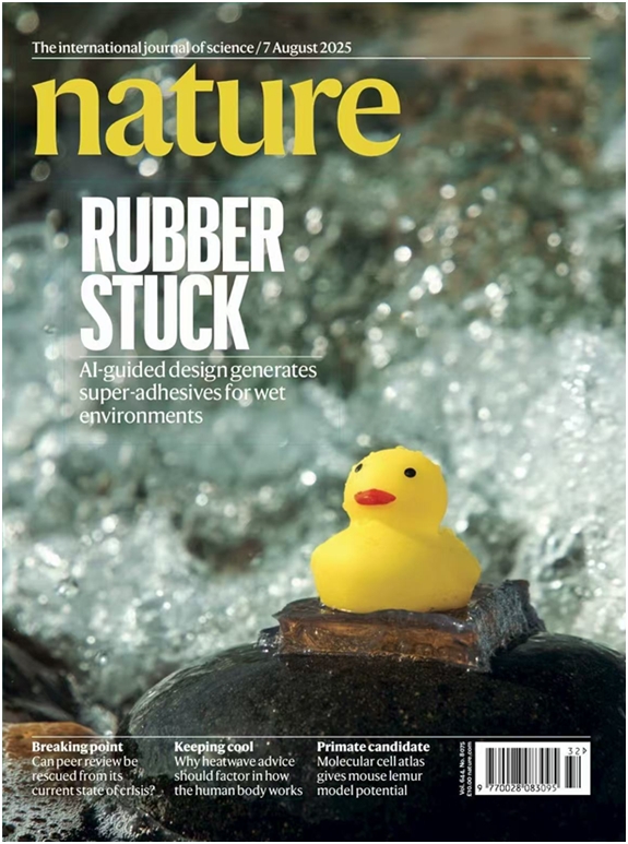 8月,深圳大学化学与环境工程学院特聘副教授范海龙联合日本北海道大学龚剑萍教授等人在水凝胶领域取得重要突破:他们基于蛋白质数据库,创新性地提出了一种融合数据挖掘、仿生实验设计与机器学习的“三位一体”设计策略,成功预测并开发了水下粘附强度达到兆帕(MPa)级的超粘水凝胶。这一成果展示了一个从“仿生经验”走向“数据驱动”的完整材料设计路径。成果于2025年8月6日发表在Nature上,并选为封面。范海龙副教授为通讯作者之一。